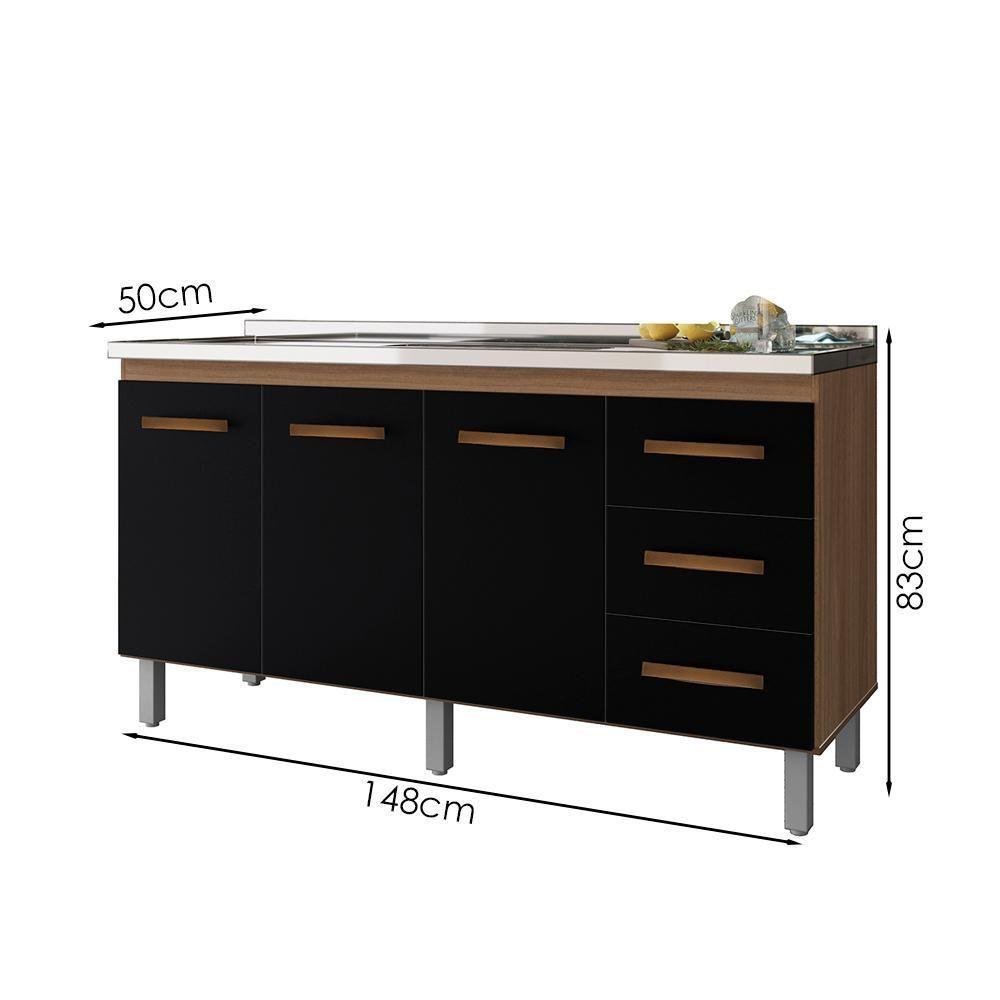 Balcao Sem Tampo Para Pia 150cm 9130 Savana Preto Mobbs Savana Preto