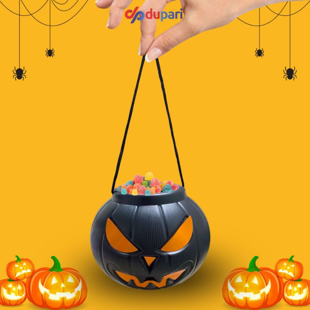 Balde Abobora de Plástico Pega Doces Dia das Bruxas Halloween Baldinho para Doce Criança Halloween