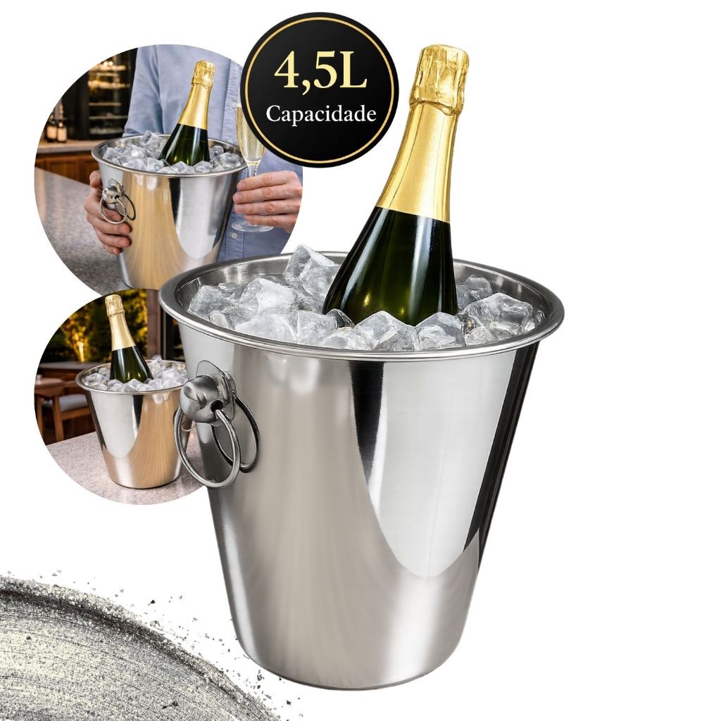 | Balde de Gelo 4,5 Litros Aço Inox com Alça Resistente para Champagn... este produto | R$ 39,90 | 32% | — | 1 |