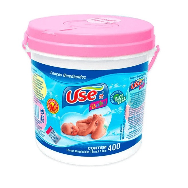 Embalagem econômica com 400 lenços umedecidos. Os Lenços Umedecidos USE IT foram elaborados especialmente para higiene da pele do seu bebê. Facilitam a remoção de impurezas. São suaves, macios e devem ser utilizados a cada troca de fralda, sendo excelente também para a limpeza das dobrinhas, perninhas e pescoço. Possuem uma fórmula exclusiva enriquecida com ALOE VERA. São suavemente perfumados e não contém Álcool Etílico em sua formulação.