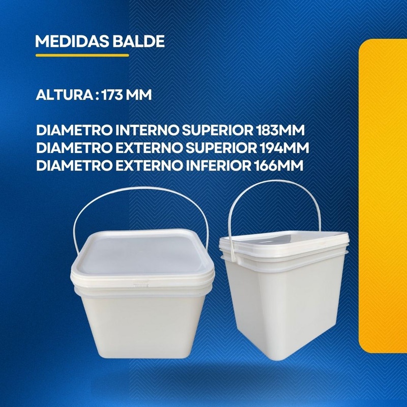 Balde Retangular 3.6 Litros com Tampa Lacre de Segurança 100% BPA FREE - Kit com 03 Peças COMERCIALIZAMOS O BALDE VAZIO - O TITULO SERVE APENAS COMO SUGESTÃO DE USABILIDADE - Embalagens com boa resistência em baixas e altas temperaturas e aprovadas para contato com alimentos. - Balde plásticos rígidos desenvolvidos e fabricados especificamente para a indústria alimenticia, quimica e farmaceutica - As tampas tem ótimo fechamento e são de fácil colocação, seu desenho permite um empilhamento seguro na câmera fria. Todos os processos são feitos em sintonia com as suas exigências, tanto de segurança, durabilidade e estética. Nesta compra voce vai receber: 03 x Baldes Retangulares Branco com Capacidade de 3.6 Litros 03 x Tampas Plasticas Retangulares Branca com Lacre de Segurança Balde: Valor Nominal 3.6 Litros Peso balde com Tampa e Alça (117 gramas) aproximado Altura Externa ( sem tampa ) 172mm aproximado Altura com tampa ( 173mm aproximado Diametro Interno Superior 183mm aproximado Diametro Externo Superior 194mm aproximado Diametro Externo Inferior 166mm aproximado Espessura Media Lateral 1,05mm aproximado Espessura Media Fundo 0,95mm aproximado Tampa: Diametro Externo: 194mm Altura: 14mm Espessura media parede: 0,77mm Peso: 33 gramas Alça: Comprimento: 350 mm Espessura media parede: 0,85 mm O Balde Retangular de 3.6 litros para alimento com tampa lacre é um recipiente projetado para armazenar alimentos em grandes quantidades. Ele é fabricado em plástico resistente, (PP) polipropileno de alta densidade, que é seguro para o contato com alimentos. A forma retangular do pote permite que ele seja empilhado facilmente, o que economiza espaço no armazenamento.