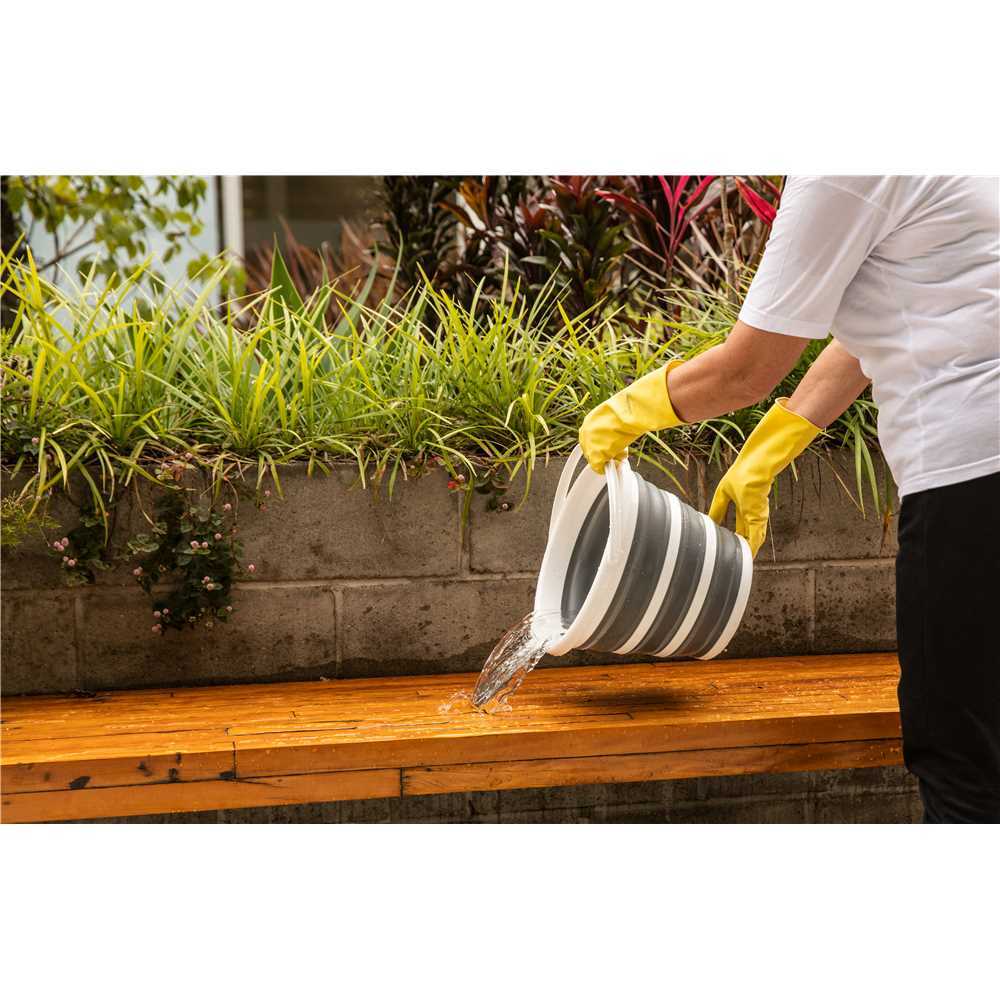 Indicado para uso doméstico. Para expandir, pressione o fundo até obter o formato completo. Possui design moderno e compacto, proporcionando melhor aproveitamento de espaço para guardá-lo após o uso. Conteúdo da Embalagem: 1 Balde dobrável. Detalhes técnicos: Temperatura máxima do líquido: 60°C Dimensões: Aberto: 31,5 cm x 25,5 cm | Fechado: 31,5 cm x 5 cm