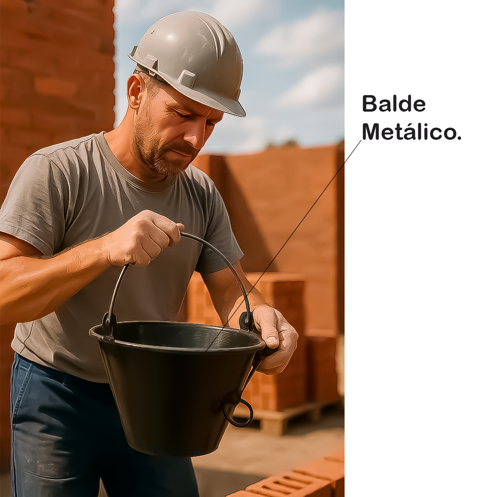 Balde Metálico Reforçado Para Argamassa Concreto Reboco Construção Obra 10 Litros Ferro Preto