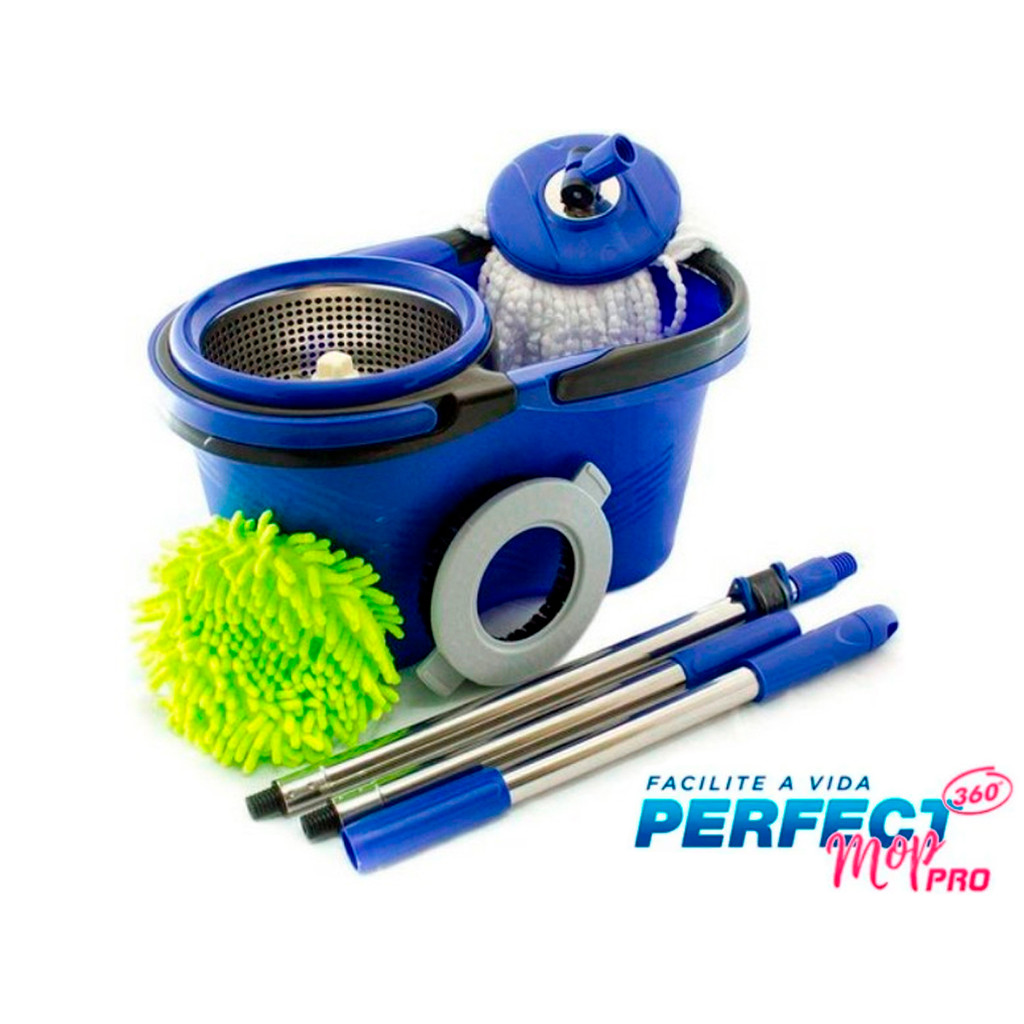 O modelo Mop Pro da Perfect Pro é um produto da categoria de limpeza que pertence ao grupo empresarial Condor. Mop Giratório Limpeza Esfregão Balde Cabo 160cm Balde 16l Azul - Diâmetro do encaixe da flange de 16cm - Caso a outra marca tenha encaixe de 16cm vai servir Perfect Mop Pro Com Refil 16L Você esta buscando praticidade e agilidade ao realizar a limpeza da sua casa ou qualquer outro ambiente? A Ismafer te apresenta o: Perfect Mop Pro. Pode ser utilizado para limpeza da sua casa, apartamento, escritório e ambientes externos. Acaba com o pó, absorve líquidos sem deixar rastros e nem resíduos e mantem as mãos longe da sujeira o tempo todo. Um produto completo e de alta qualidade que vai te surpreender. - ACOMPANHA: :: 1 Refil esfregão de microfibra :: 1 Refil esfregão limpeza a pó :: 1 Refil escovão limpeza pesada :: 1 Balde mop :: 1 Cabo mop completo - VANTAGENS: - O balde Mop Esfregão com cesto inox é um modelo resistente, e possui um cabo de ergonômico de 1,60 metros, mantendo a postura ideal para sua coluna. - Com seu cabo de 1,60 metros facilita alcançar lugares altos na hora da limpeza. - As cerdas de Microfibra do Balde Mop elas conseguem sugar de uma só vez todo o líquido. -Fibras de alta absorção removem qualquer sujeira, sem danificar o piso ou porcelanato é só molhar, centrifugar, passar e pronto. - O refil microfibra absorve toda a sujeira sem espalhar. Limpar seu carro, janela, ou sujeira embaixo dos móveis é rápido prático e eficaz. - ESPECIFICAÇÕES: :: Altura: 25,5 Cm :: Largura: 27 Cm :: Comprimento: 46 Cm :: Altura do cabo: 1,60 Metros (160 Cm) :: Capacidade total do balde: 16 litros - MARCA: Perfect - MODELO: Perfect - 380898 SKU: 13426 Distribuído por Ismafer Ferramentas Especificações Técnicas: