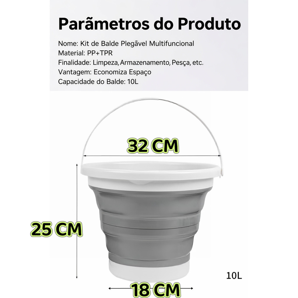 Conjunto de Balde e Pia Dobráveis – Prático, Durável e Eficiente 🚀🚀🚀Armazém Local, Envio Imediato🚀🚀🚀 - Informações do Produto - - Altura: 5-25 cm (Retrátil)👍👍👍 - Comprimento: 32cm - Largura: 25 cm - Peso do Balde: 450 g - Capacidade do Balde: 10 litros - Embalagem: Saco OPP (embalagem resistente em vários tamanhos para fácil armazenamento e transporte) O tamanho é medido manualmente, podendo haver alguns erros, que não afetarão o uso normal. Consulte o produto real:) 🙌🙌🙌 Um produto, múltiplas funções! Materiais de alta qualidade, seguros e duráveis! Feito de **PP + TPR**, resistente a impactos e durável para uso frequente. Não contém substâncias tóxicas e é adequado para contato com a pele e água. Seja em ambientes externos ou internos, você pode usá-lo com confiança! Por que você precisa de ta❓❓❓ (1) Acampamento e Pesca: Liberdade ao ar livre - No acampamento: O balde dobrável pode ser carregado na mochila para coletar água da cachoeira e lavar louça/blusas sujas. - Na pesca: O balde armazena água para molhar a isca e a pia para armazenar peixes recém-pescados. Dobrável = sem espaço no carro de pesca! (2) Quarto: Organização de pequenos espaços - Limpeza rápida: Lave louça e roupas em um banheiro compacto. Dobre e guarde atrás da cama/debaixo da mesa, sem bagunça! - Economia de água: Capacidade razoável (10L) evita desperdício, perfeito para o orçamento.