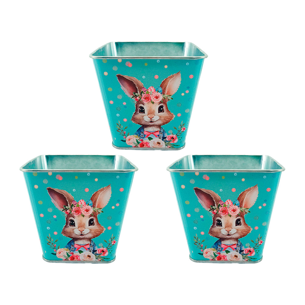 Baldinho de Páscoa Quadrado Metálico Coelhinho 9,5cm