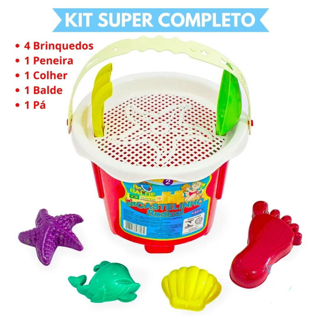 Baldinho de Praia Kit Balde Praia Castelinho Areia Infantil Completo Brinquedo Crianca
