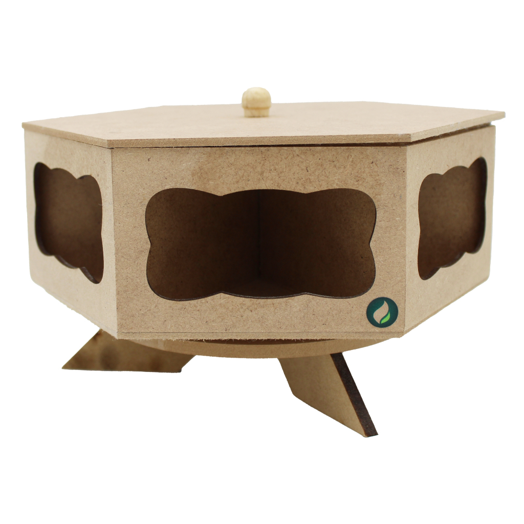 Baleiro Giratório em MDF Cru com Tampa e Divisórias para Doces e Balas com vidros e tampa