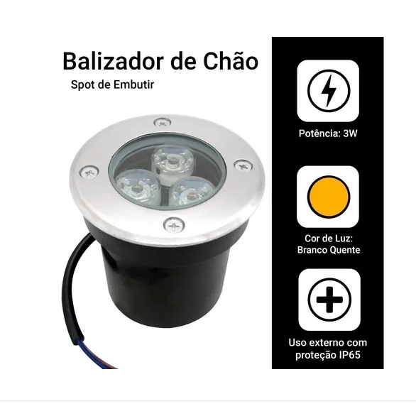 Balizador Spot Led Embutir Chão 3w Piso Jardim smd