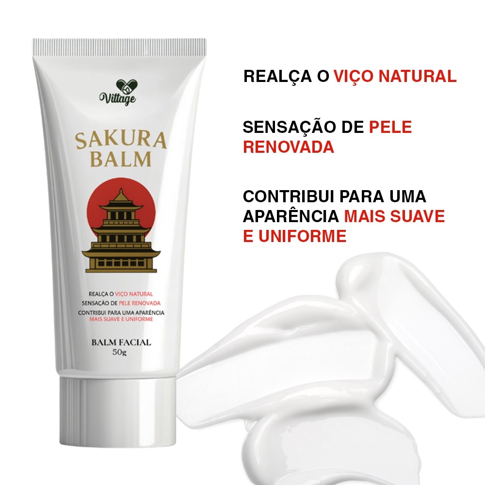 🌸 Sakura Balm Vittage – Balm Facial 50g Textura leve • Uso diário • Sensação de pele renovada ✨ Benefícios • Ajuda a manter a pele com aparência saudável • Sensação de pele mais macia e suave ao toque • Contribui para uma hidratação equilibrada • Aparência de pele descansada e revitalizada • Toque leve e fácil absorção • Sensação refrescante após o uso • Ideal para cuidados diários com a pele do rosto • Promove sensação de frescor e bem-estar após a aplicação • Ajuda a melhorar a sensação de conforto da pele • Pode ser usado diariamente como parte do skincare ⸻ 🧴 Modo de uso 1. Com a pele limpa e seca, aplique uma pequena quantidade do produto no rosto. 2. Espalhe suavemente com as pontas dos dedos, fazendo movimentos circulares até completa absorção. 3. Pode ser usado de manhã e à noite. 4. Uso diário. ⸻ 📦 Conteúdo da Embalagem • 1 unidade do Sakura Balm Facial 50g – Vittage