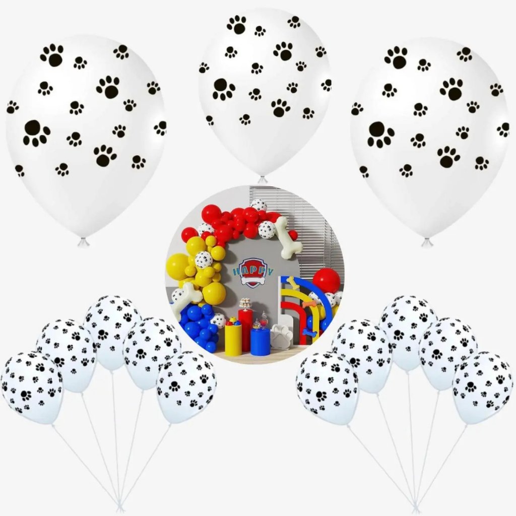 Balões São Roque Decorado Pata De Cachorro Branco/Preto Nº9 C/25un