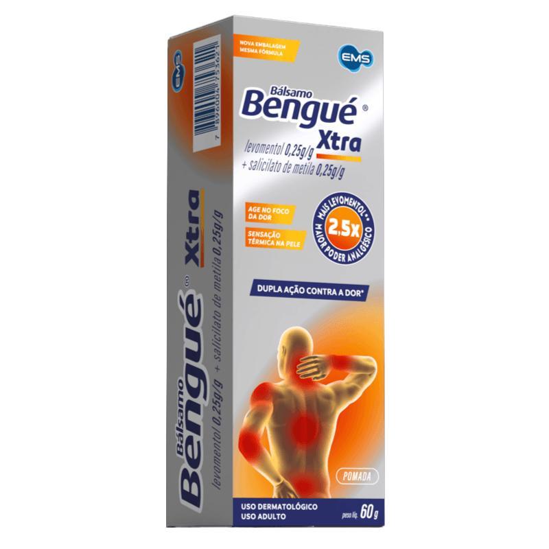 Bálsamo Bengué Pomada – Alívio Rápido para Dores Musculares e Contusões Bengué Pomada é ideal para o alívio rápido e eficaz contra dores musculares, contusões e desconfortos causados por esforço físico. Com ação anti-inflamatória e analgésica, Bengué proporciona uma sensação refrescante graças ao mentol, tornando sua aplicação ainda mais agradável. Benefícios - Alívio rápido das dores musculares e contusões - Dupla ação: combate a inflamação e reduz a dor - Ideal para praticantes de esportes ou quem sofre com dores por esforço repetitivo. Como Bálsamo Bengué Pomada age? Bálsamo Bengué contém duas substâncias ativas: mentol e o salicilato de metila. O mentol, quando aplicado na pele, dilata os vasos sanguíneos, causando a sensação de frio e, em seguida, efeito analgésico. O salicilato de metila tem ação analgésica aliviando a dor e anti-inflamatória características dos salicilatos. Não use se a pele estiver quente, como por exemplo, antes, durante ou depois de atividades que aumentam a temperatura da pele, ou quando o tempo estiver quente/úmido. Espere até que sua pele tenha esfriado antes de aplicar o medicamento. Indicação de Uso Recomendado para o tratamento de: - Dores musculares - Contusões - Dores nas costas, ombros, pernas e braços causadas por esforço físico. Como usar o Bálsamo Bengué Pomada? Aplique de 2 a 3 vezes ao dia diretamente sobre a região afetada. Não é necessário massagear. Evite o contato com olhos, mucosas ou pele irritada. Quais são as reações adversas de Bálsamo Bengué Pomada? O mentol pode causar reações de hipersensibilidade. Raramente, foram relatadas a ocorrência de dermatite de contato, erupções cutâneas e urticária. Pessoas com hipersensibilidade ao ácido salicílico estão mais expostas a efeitos adversos.