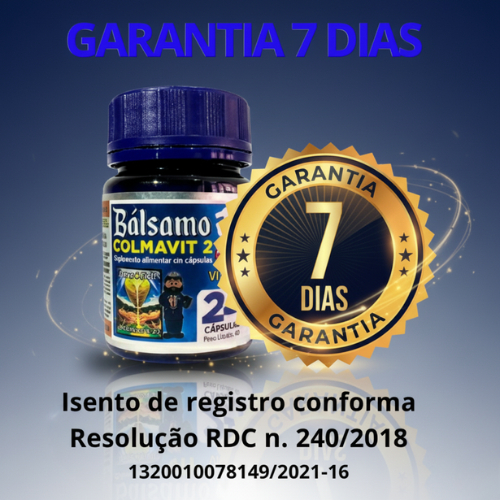Bálsamo Je's Premium - Produto Importado e Original – Pronta entrega. Principais Características: - Produto 100% natural com Colágeno Tipo II, Ômega 3 e Algas Marinhas - Apenas 1 cápsula ao dia – ação prolongada por até 24h - Contém 24 cápsulas de 200mg - Produto original, lacrado e com pronta entrega - Não contém glúten Composição do Bálsamo Je's Premium: - Colágeno Tipo 2 (40mg) - Vitamina D3 (5mcg) - Magnésio Dimalato (63mg) - Vitamina K2 (55mcg) - Ômega 3 e Algas Marinhas Apresentação: Pote com 24 cápsulas de 200mg – Uso adulto (acima de 18 anos). Modo de Uso: Tomar 1 cápsula por dia após a refeição, até o alívio completo dos sintomas. Não exceder a dose recomendada. Contraindicações: Não recomendado para gestantes, lactantes, crianças menores de 18 anos, alérgicos a anti-inflamatórios ou qualquer um dos componentes da fórmula. Consultar um médico em caso de condições pré-existentes, como hipertensão, diabetes ou doenças cardíacas. Cuidados: Não ingerir com bebidas alcoólicas. - Armazenar em local seco e fresco, à temperatura ambiente. - Manter fora do alcance de crianças. Atenção: O Bálsamo Je's Premium não é um medicamento, é um suplemento alimentar que auxilia no alívio de dores articulares e musculares. Se houver reações adversas, como vermelhidão, inchaço ou dor abdominal, suspenda o uso imediatamente e procure orientação médica. Perguntas Frequentes (FAQ) 1. É um medicamento? Não. O Bálsamo Je’s é um suplemento alimentar natural e não deve substituir tratamentos médicos. 2. Quanto tempo leva para fazer efeito? Em muitos casos, o alívio começa após os primeiros dias de uso. O efeito pode variar conforme o organismo. 3. Pode ser tomado por diabéticos, hipertensos ou cardíacos? Recomendamos que esses grupos consultem um médico antes do uso, por precaução. 4. Pode tomar mais de uma cápsula por dia? Não. A dose recomendada é de 1 cápsula ao dia. Ultrapassar essa dose pode causar efeitos adversos. 5. Pode ser usado por idosos? Sim! O suplemento é ideal para auxiliar na manutenção da mobilidade e no fortalecimento das articulações na terceira idade. 6. Tem efeitos colaterais? Quando usado corretamente, é bem tolerado. Em casos raros, pode causar vermelhidão, retenção de líquidos ou desconfortos gastrointestinais. Se isso ocorrer, suspenda o uso e procure um médico. 7. Posso tomar junto com outros suplementos ou medicamentos? Consulte um profissional de saúde para evitar interações entre compostos. 8. Contém glúten? Não. O produto é livre de glúten. 9. É aprovado pela Anvisa? Como suplemento alimentar, segue as normas da Anvisa para esse tipo de produto.
