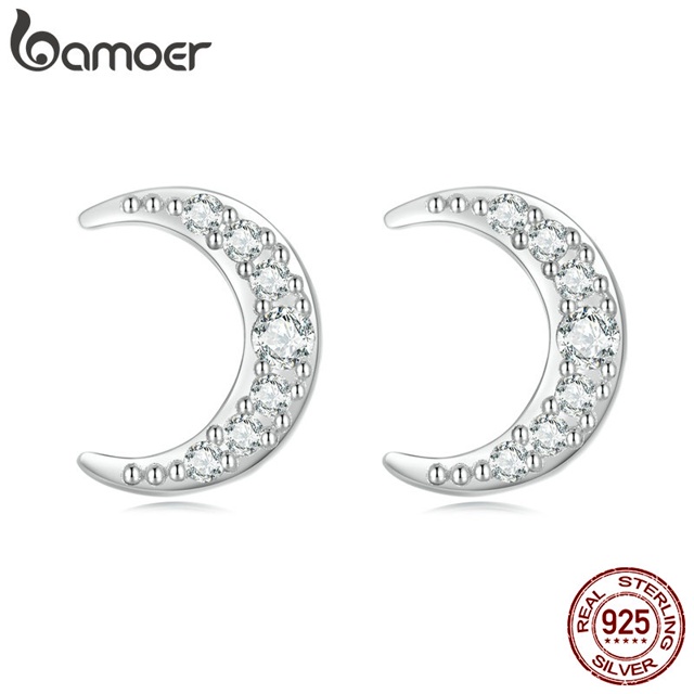 Bamoer 1 Par De Brincos De Prata Esterlina 925 Com Lua Tarraxa Versátil