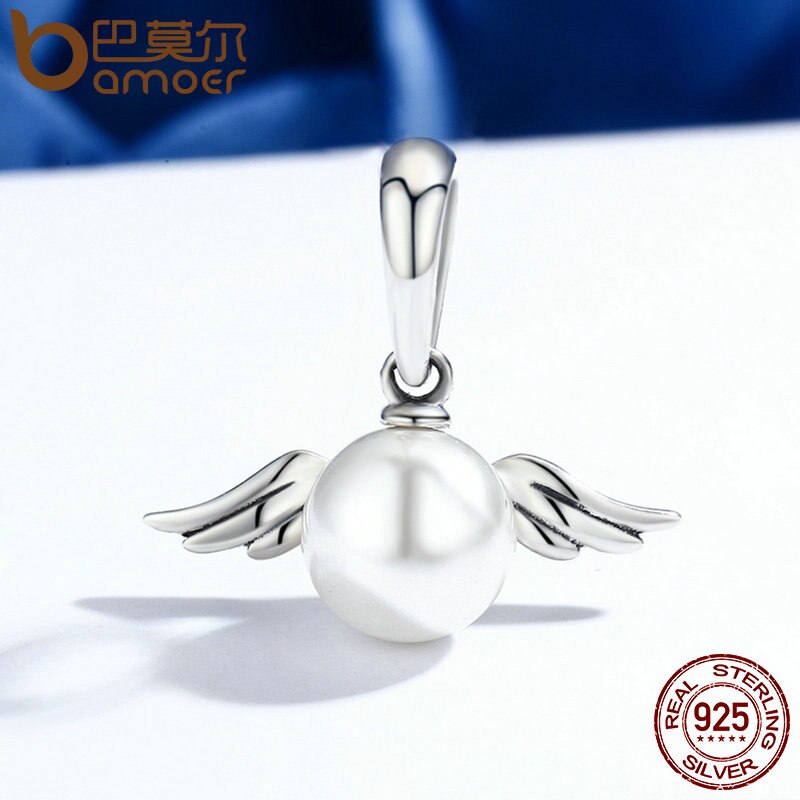 Bamoer 100 % 925 Sterling Silver Anjo Naughty Asa Pena Charme fit Charm Bracelet & Colar Jóias Fazendo SCC381