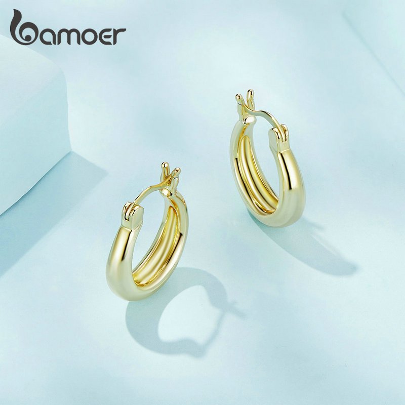 BAMOER 18K Brincos De Metal Grandes Revestidos A Ouro Jóias De Moda Para Mulheres