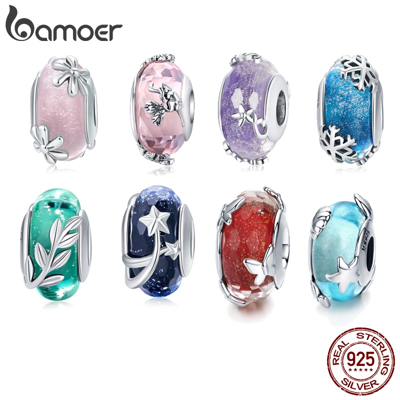Bamoer 4 Kind Murano Glass Beads Fit Charme Pulseiras E De Vidro Prata 925 Sterling SCC862