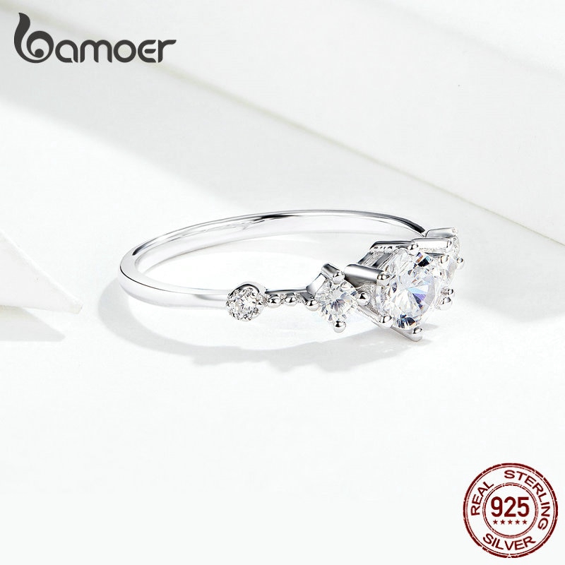 Bamoer 925 Anéis De Dedo De Noivado Cintilante De Prata Para Jóias Femininas SCR568
