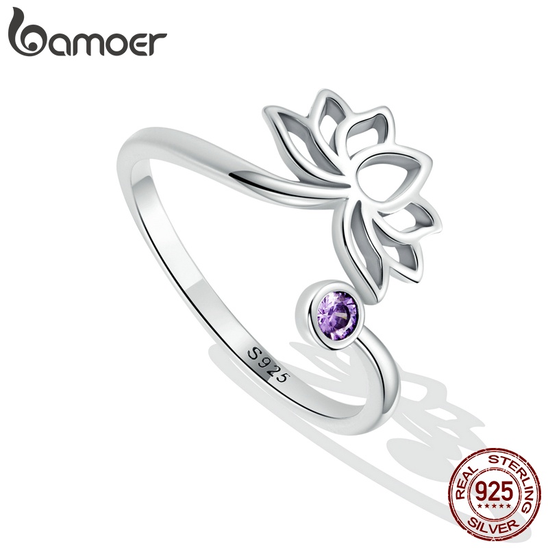 Bamoer 925 Anel Aberto De Prata Simples Estilo De Lótus Tamanho Ajustável Moda Jóias Para As Mulheres