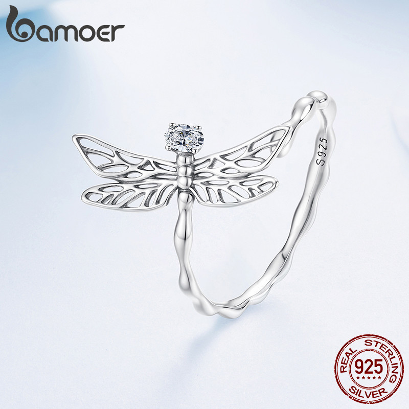 Bamoer 925 Anel Ajustável De Prata Esterlina Original Libélula Joia Presente Para Mulheres