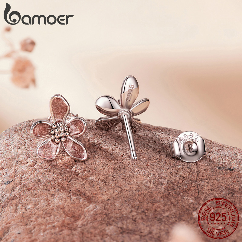 Bamoer 925 Brincos De Prata Esterlina Originais Flor De Outono Joias Antialérgicas Presente Feminino