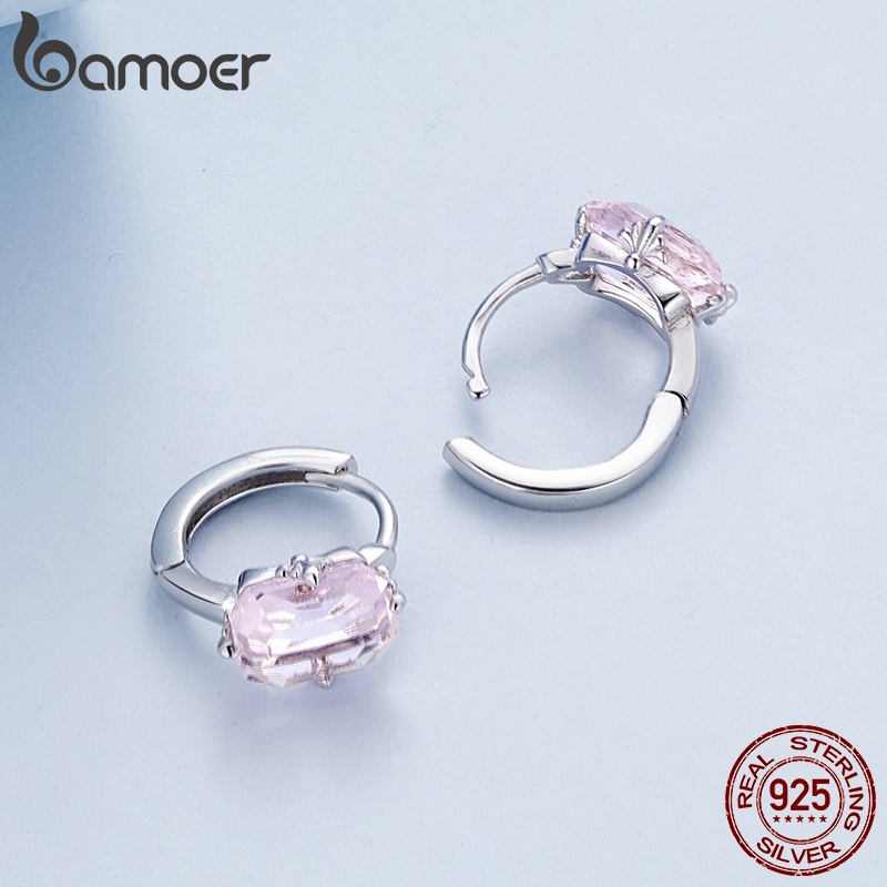 BAMOER 925 Brincos Em Zircônio Rosa Prata 925 Estilo Sofisticado Jóias De Moda Para Presentes