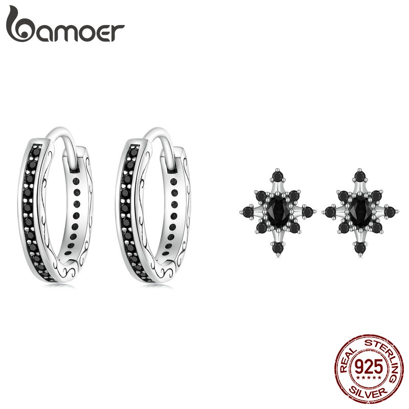 Bamoer 925 Conjunto De Joalheria De Prata Estrela Preta Brincos Presentes Para Mulheres Homens