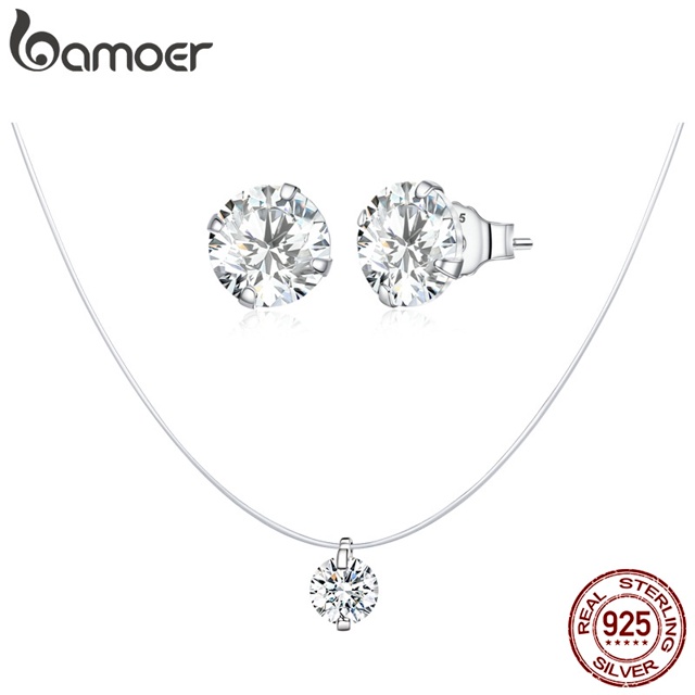 Bamoer 925 Conjunto De Joias De Prata Esterlina Colar E Brincos Zircônio Brilhante Para Mulheres Presentes Meninas