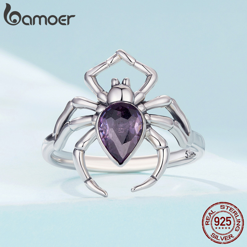 Bamoer 925 Original Anel De Prata Esterlina Aranha Escura Jóias Personalizadas Presente Feminino