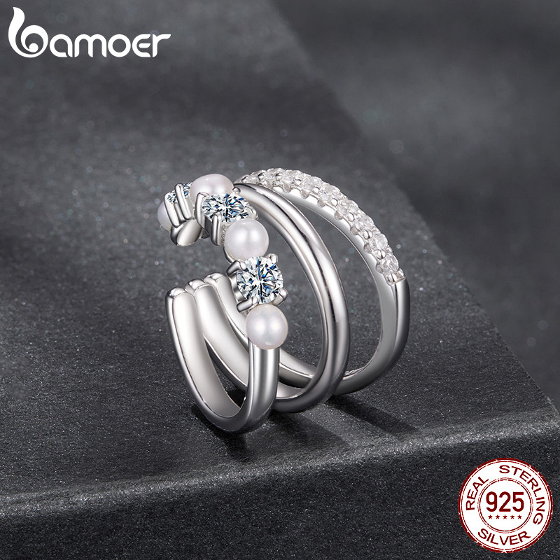 Bamoer 925 Original Prata Esterlina Moissanite Brincos Pérola Orelha Manguito Anti-Alérgico Jóias Presente Feminino