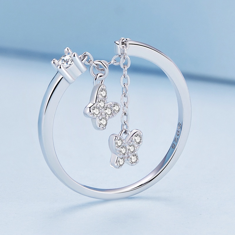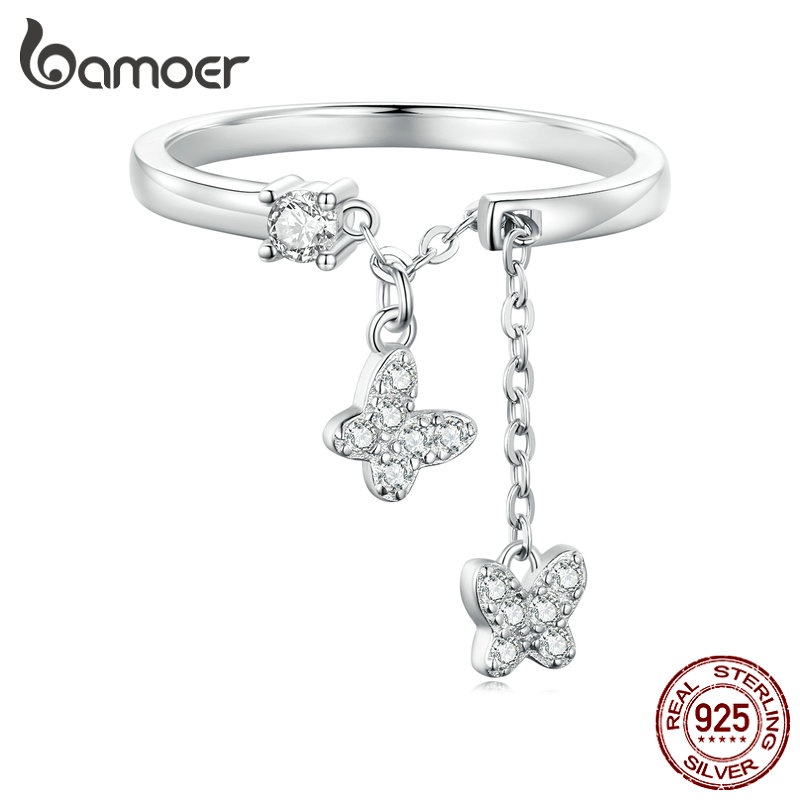 Bamoer 925 Prata Ajustável Corrente Borboleta Abertura Anel Moda Joalheria Para Mulheres