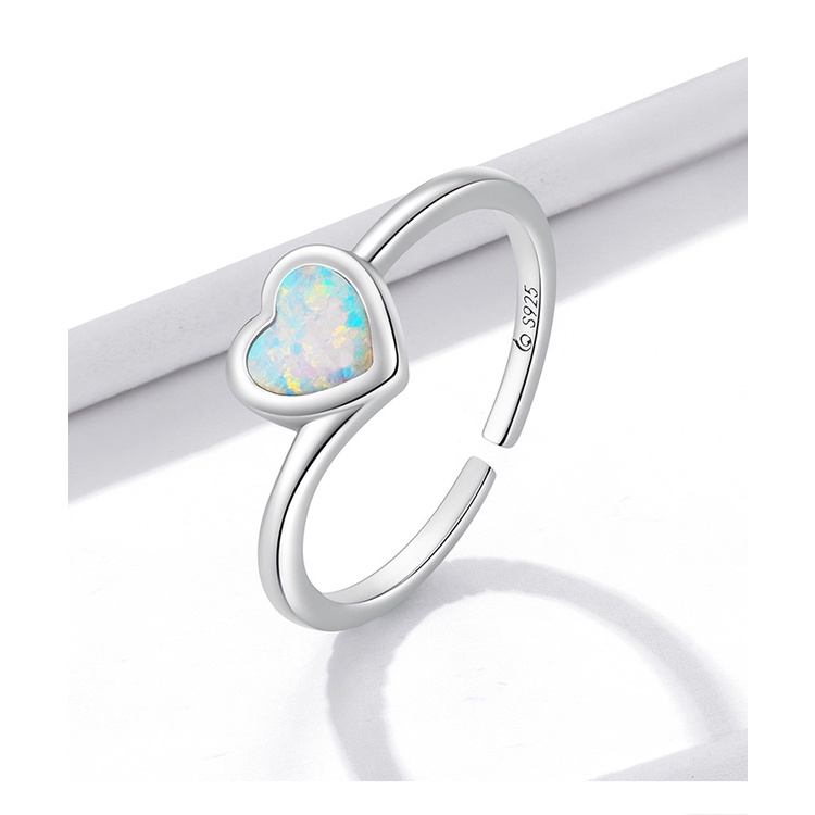Bamoer 925 Prata Anel Opala Em Forma De Coração Jóias Da Moda Presentes Para Mulheres BSR234
