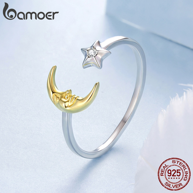 Onde comprar Bamoer 925 Prata Esterlina Anel Ajustável Estrela Lua Jóias Presente Feminino?