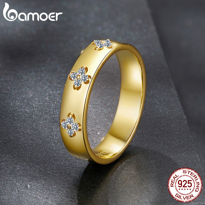 Bamoer 925 Prata Esterlina Anel Cor Ouro Sorte Trevo De Quatro Folhas Moissanite Moda Jóias Presentes Para Mulher
