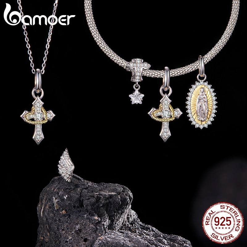 Bamoer 925 Prata Esterlina Charme Cruz Nossa Senhora Da Guarda Asas Pingente Série Pulseira Presente Para Mulher