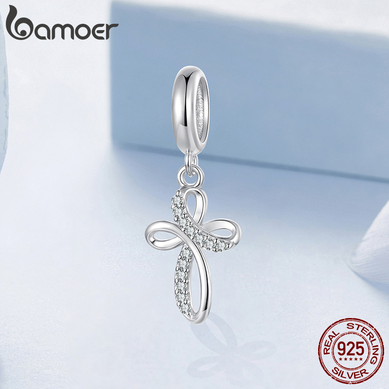 Bamoer 925 Prata Esterlina Charme Cruz Pingente DIY Para Pulseira Presentes Mulheres