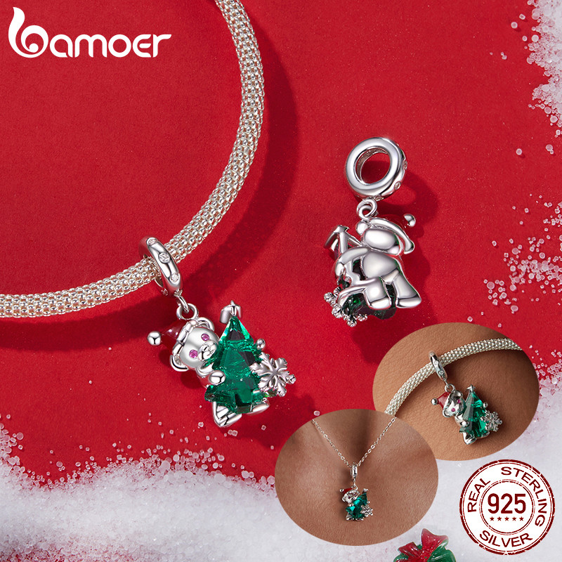 Bamoer 925 Prata Esterlina Charme Natal Urso Rena Pingente Acessórios Jóias Presente Para Mulher