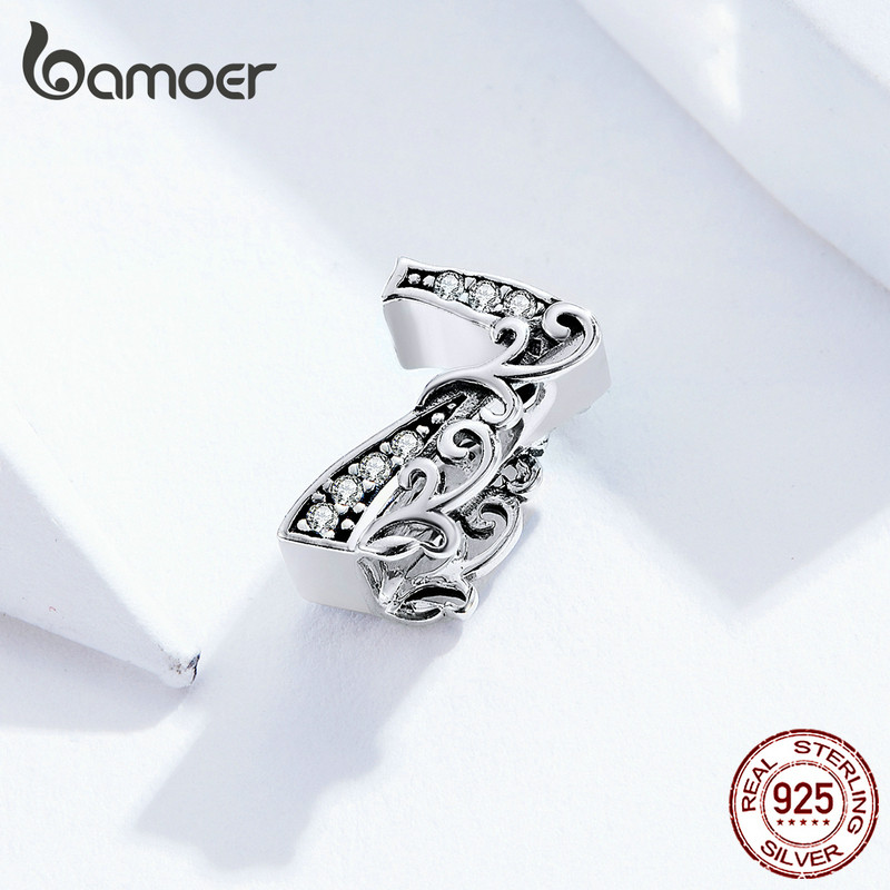 Bamoer 925 Prata Esterlina Charme Números Em Relevo Design Simples DIY Para Pulseira Mulher SCC1418-7