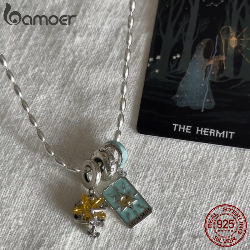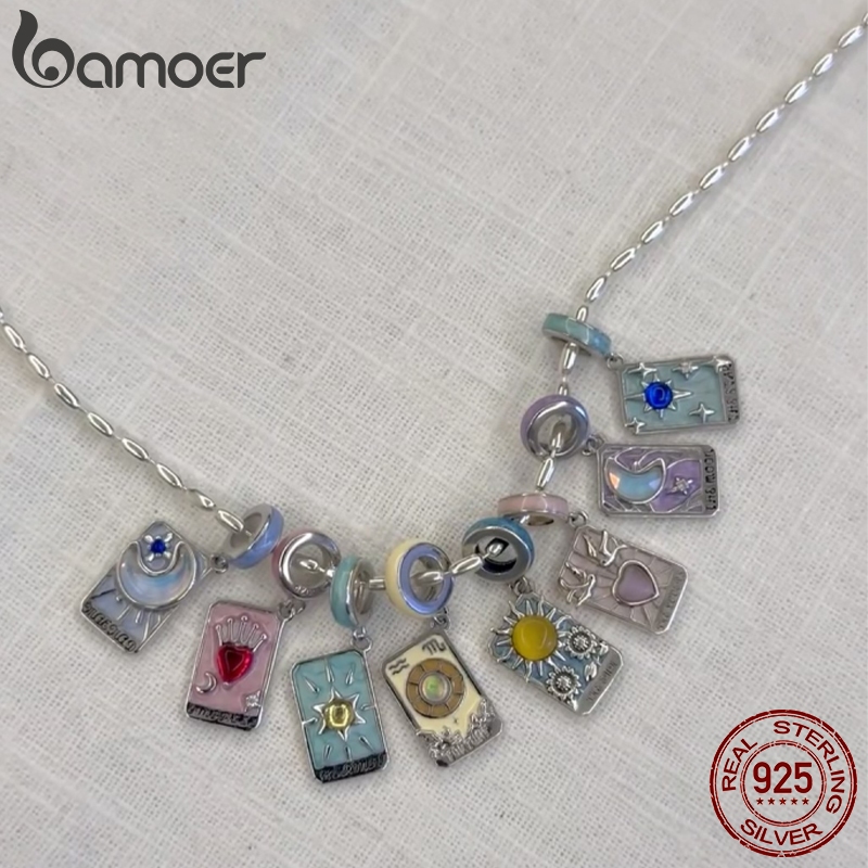 Bamoer 925 Prata Esterlina Charme Para Mulheres Tarô Cartão Lua Estrela Pingente DIY Pulseira Colar