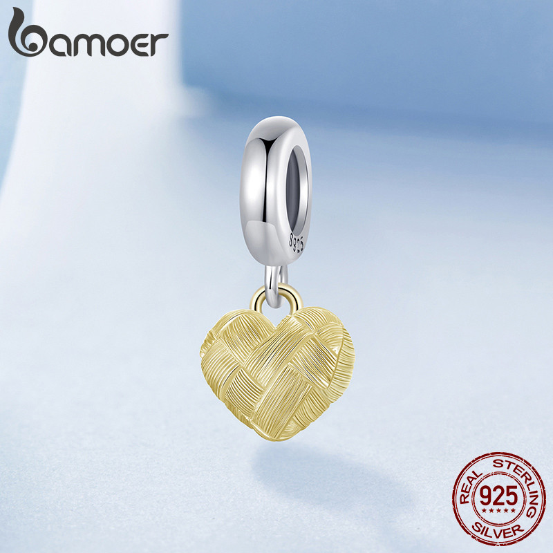 Bamoer 925 Prata Esterlina Charme Tecido Coração Contas Pingente Presentes DIY Para Pulseira BSC1089