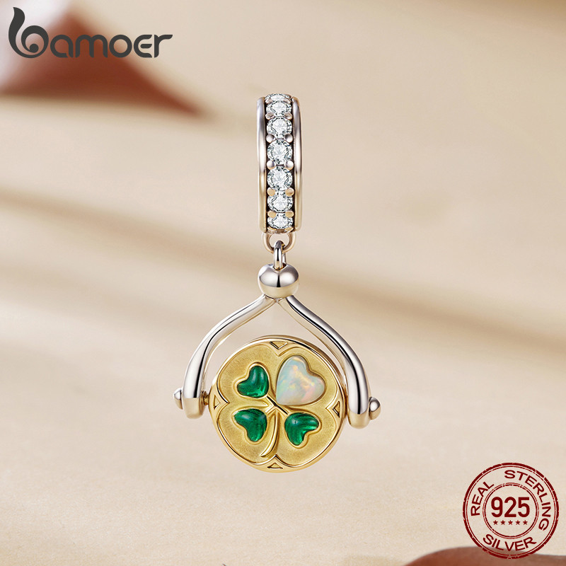 Bamoer 925 Prata Esterlina Charme Trevo De Quatro Folhas Sorte Girando Pingente Série Pulseira Presente Para Mulher