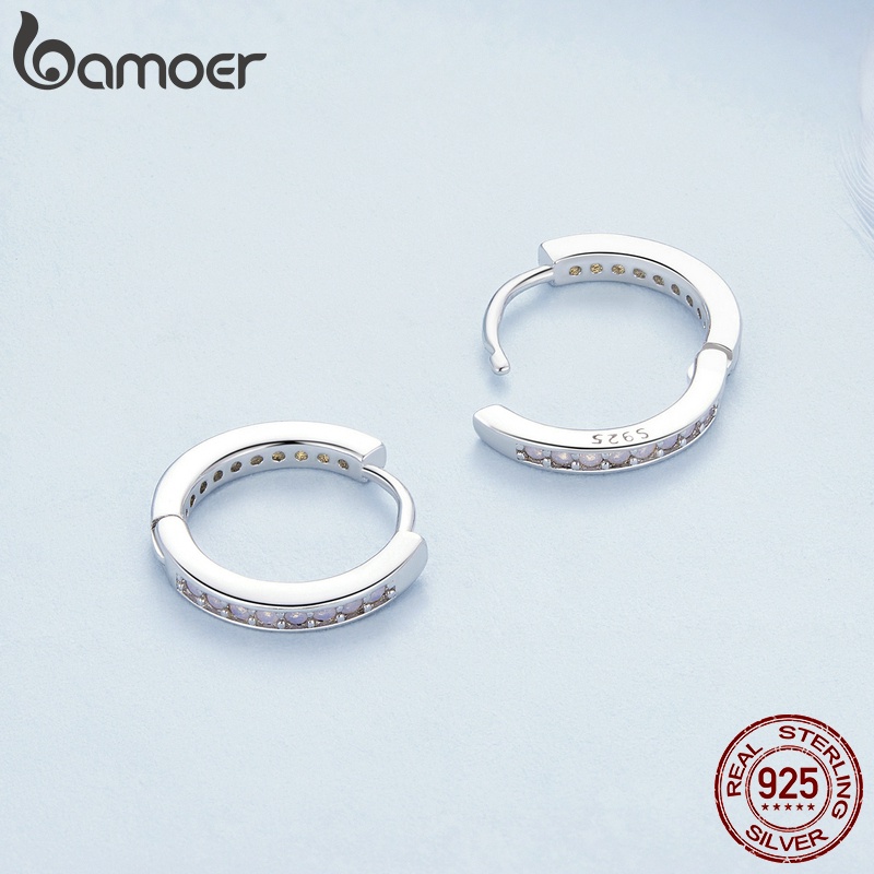 Bamoer 925 Prata Esterlina Clássica Brincos Opala Rosa Moda Jóias Elegantes Presentes Para Mulheres