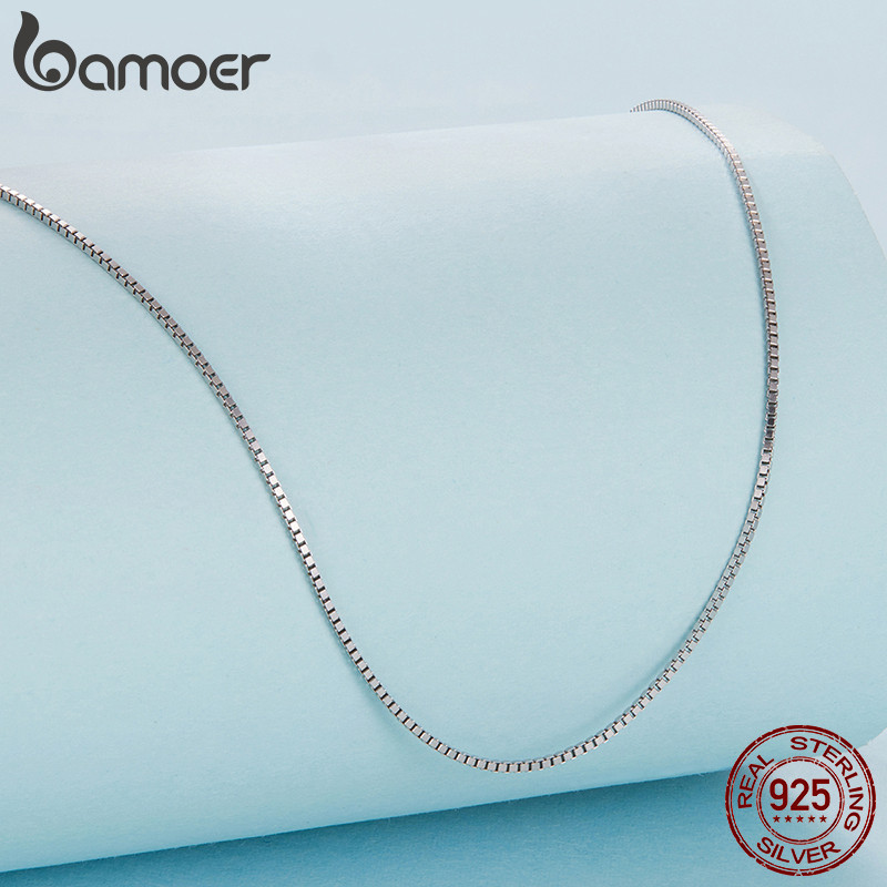 Bamoer 925 Prata Esterlina Colar Caixa Link Corrente Jóias Presentes Para Mulher 40cm 45cm 50cm