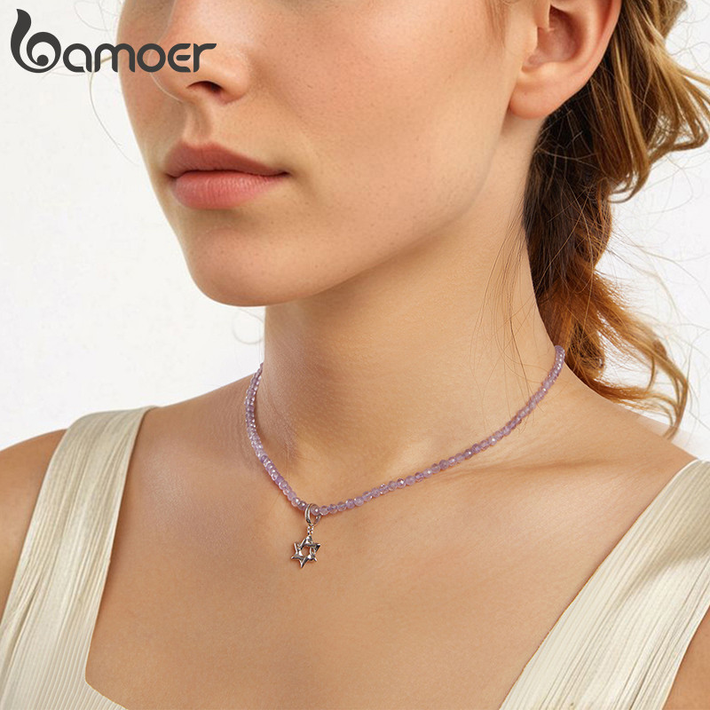 Bamoer 925 Prata Esterlina Colar Estrela De Seis Pontas Ametista Jóias Presente Feminino