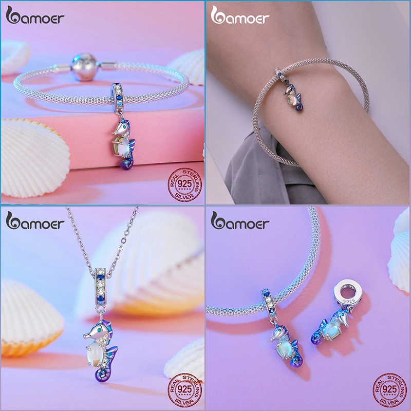BAMOER 925 Prata Esterlina Colorida Série Animal Beaded Tartaruga Cavalo Marinho Unicórnio Ornamentos Adequados Para Mulheres