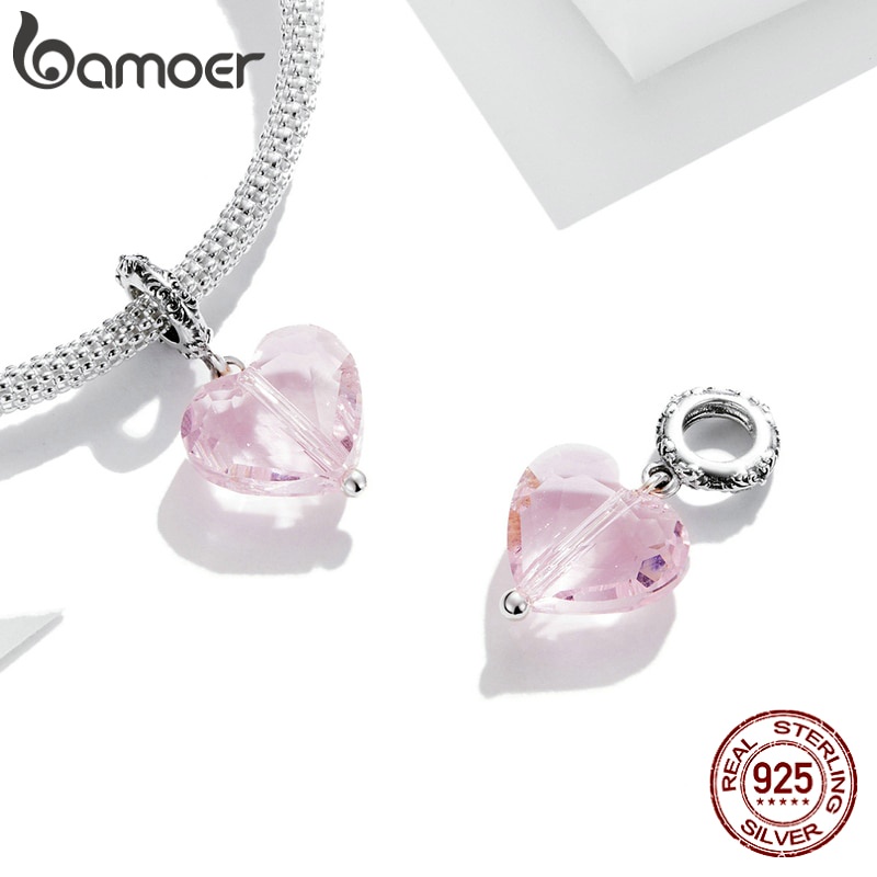 Bamoer 925 Prata Esterlina Coração Pingente Azul E Rosa Contas Para Pulseira Colar DIY Acessórios De Moda SCC1816