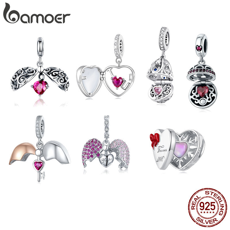 Bamoer 925 Prata Esterlina Encantos Amor Coração Comutável Pingente Acessórios Presente De Aniversário SCC689