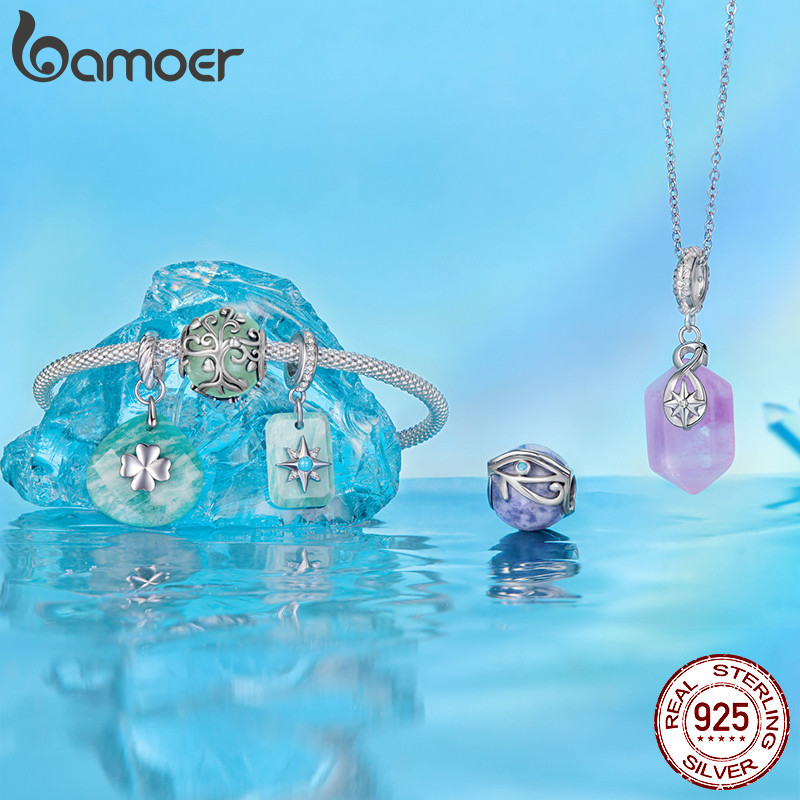 Bamoer 925 Prata Esterlina Pingente Sorte Amazonita Energia Ametista Árvore Da Vida Olho De Horus Acessórios Coleção Pul