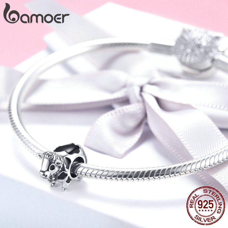 Bamoer 925 Prata Real Fofa Vaca Bezerro Encanta Miçangas Servem Pulseiras Originais Esterlina SCC1049