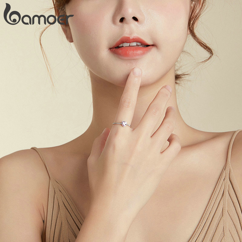 Bamoer 925 Prata Rosa Amor Anel Moda Mulheres Jóias De Casamento Acessórios Presente